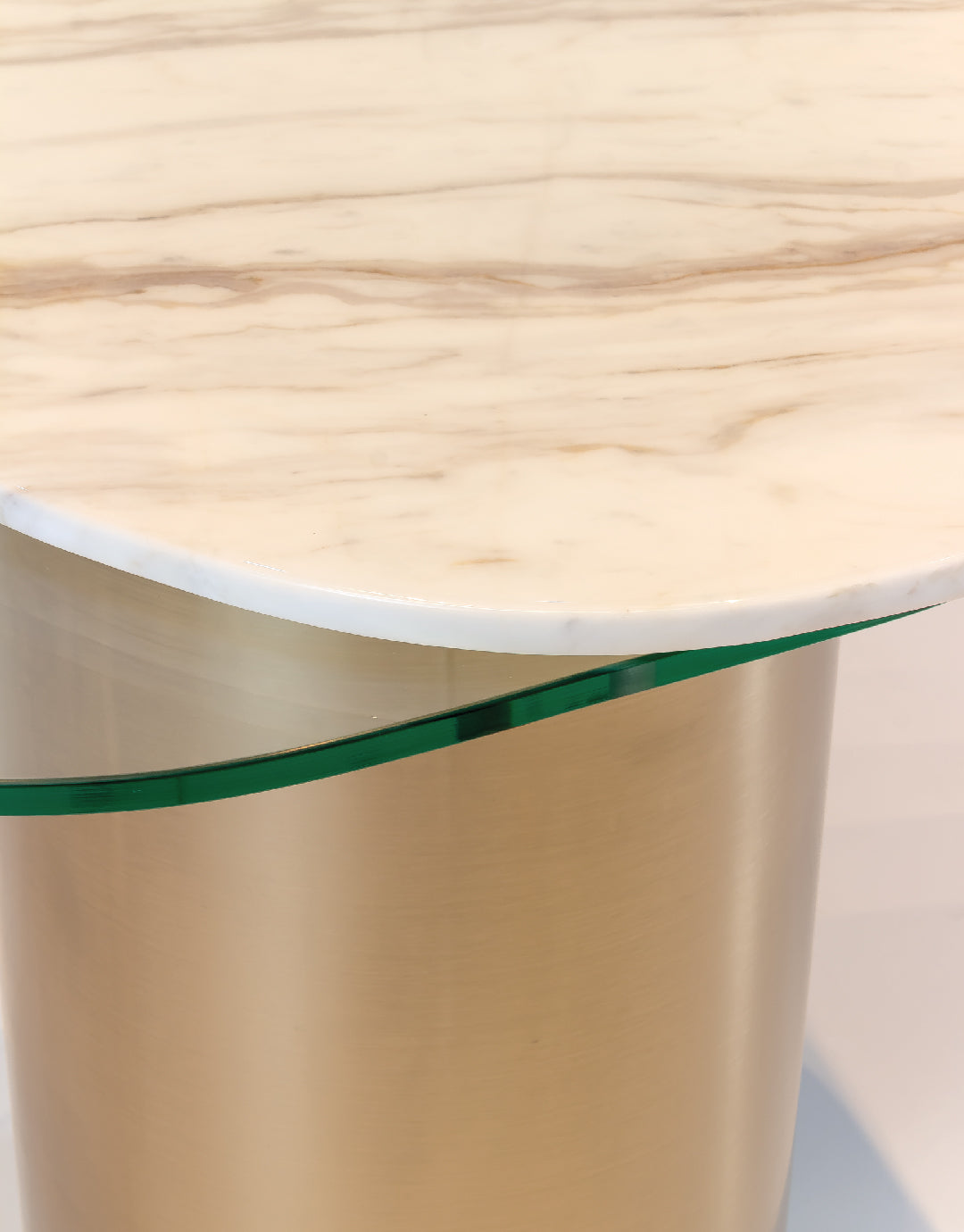 Materiales: Estructura de acero + cubierta de mármol y cristal gris