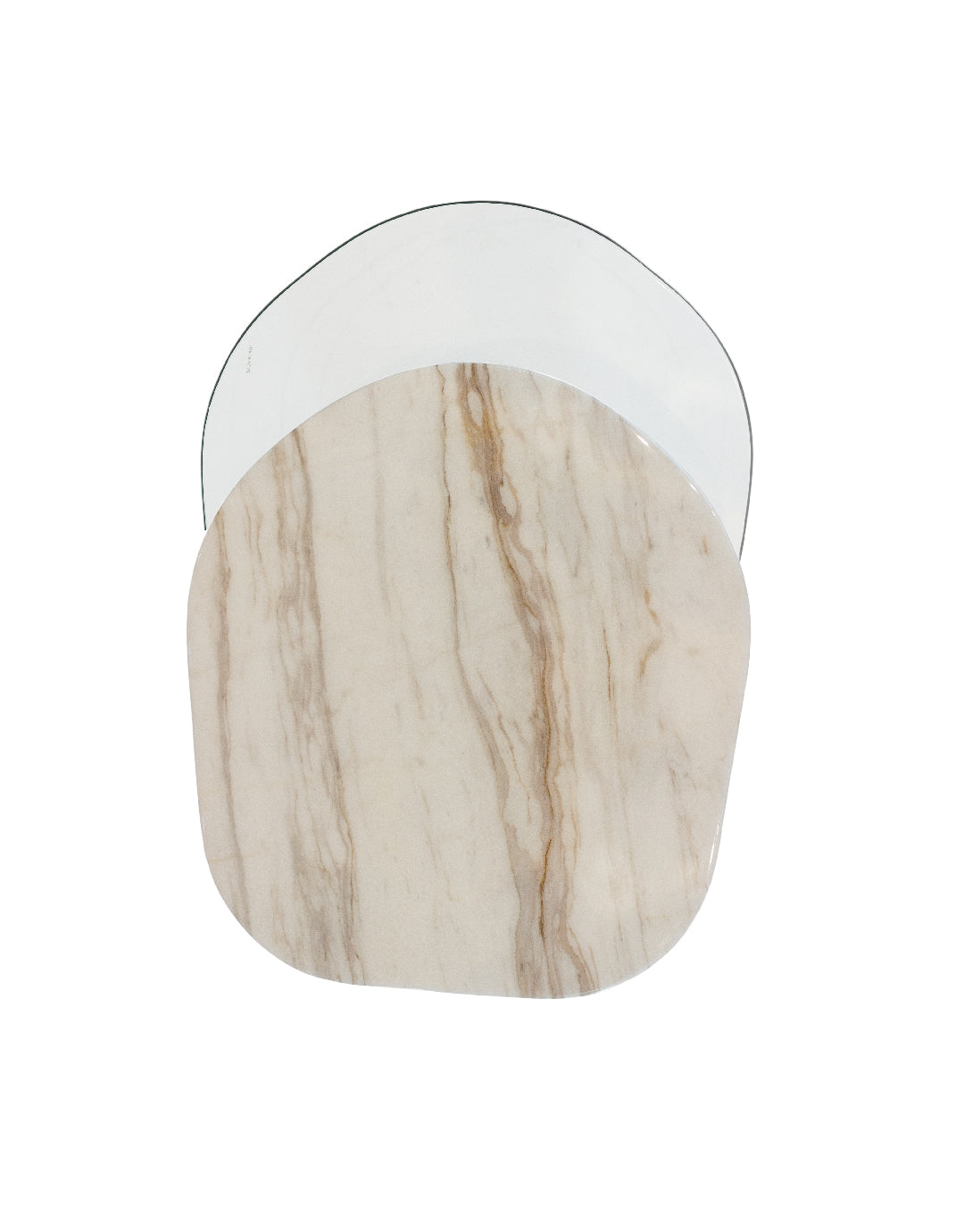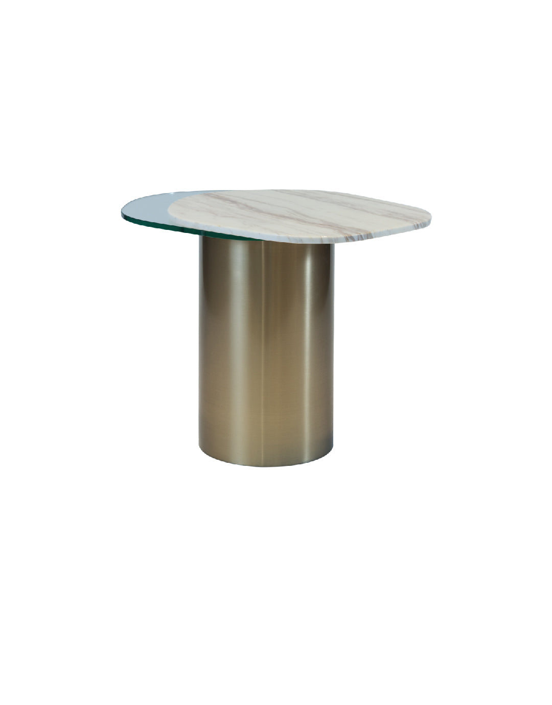 Esta mesa lateral es una combinación única de diseño contemporáneo y materiales sofisticados, ideal para aportar un toque de elegancia a cualquier espacio.