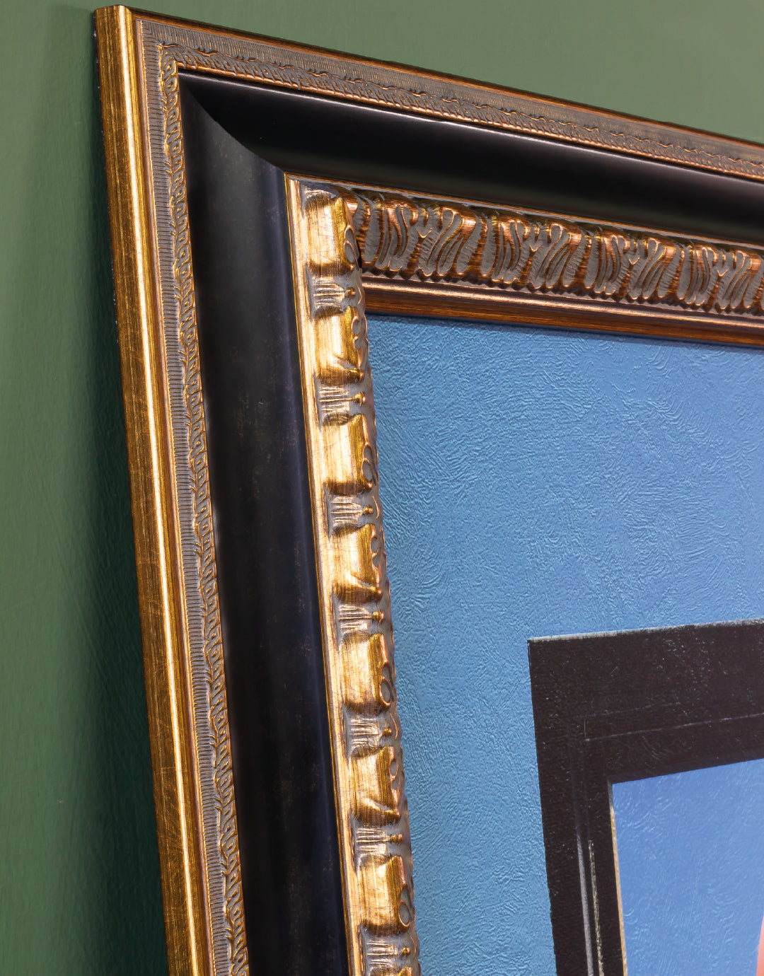 Materiales: Canvas de madera con marco y de madera y plastico con detalle de hoja de oro.